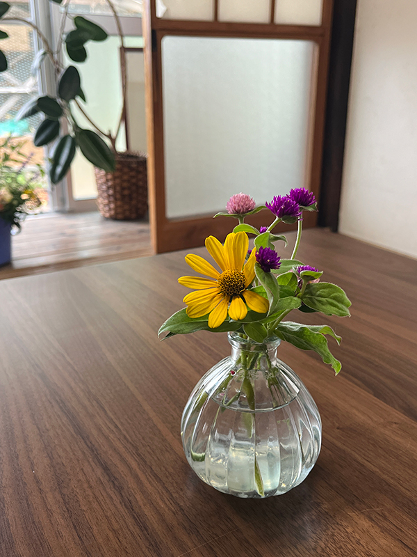 福岡にいた頃、青山フラワーマーケットを覗くのが好きだったが、お洒落な花束は家庭用には高額で、手が出せなかった。田舎に住むと、庭先にも道端にも花が咲いている。気に入ったら摘んできて、家中の花瓶に挿した。その写真を見るだけで、この一年が思い出される。